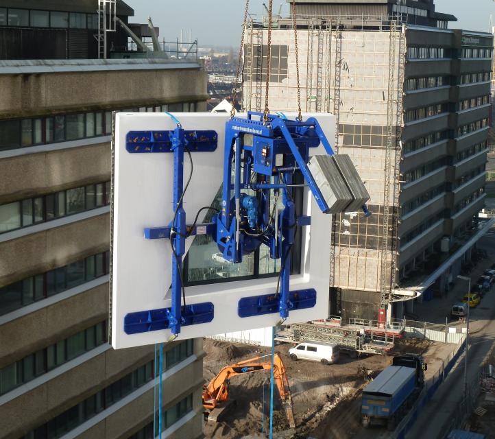 Met deze vacuum-lifter heft u heel eenvoudig betonplaten met een poreus oppervlak. Deze lifter beschikt over een vacuumvermogen van 300m3 (standaard vacuumlifters hebben 50m3).